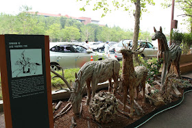 競馬場までの道のりには、歴史上著名人物が乗りこなした馬の造型があって、興味を引きます。